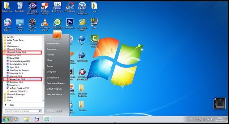 3 คลิกเลือกโปรแกรม Microsoft PowerPoint 2010