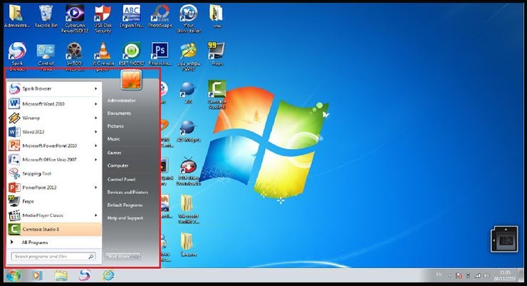 1 คลิกที่ปุ่ม Start (มุมล่าง ด้านซ้ายมือ)