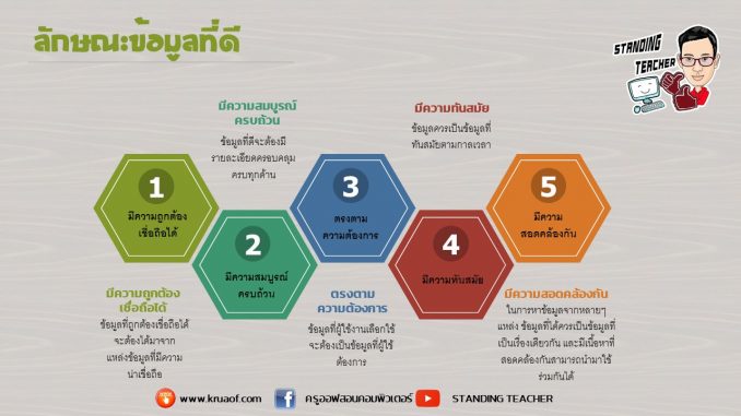 Infographic เรื่องลักษณะข้อมูลที่ดี ป.5 วิชาวิทยาการคำนวณ หน่วยที่ 3 ข้อมูลสารสนเทศ เรื่องที่ 8.1