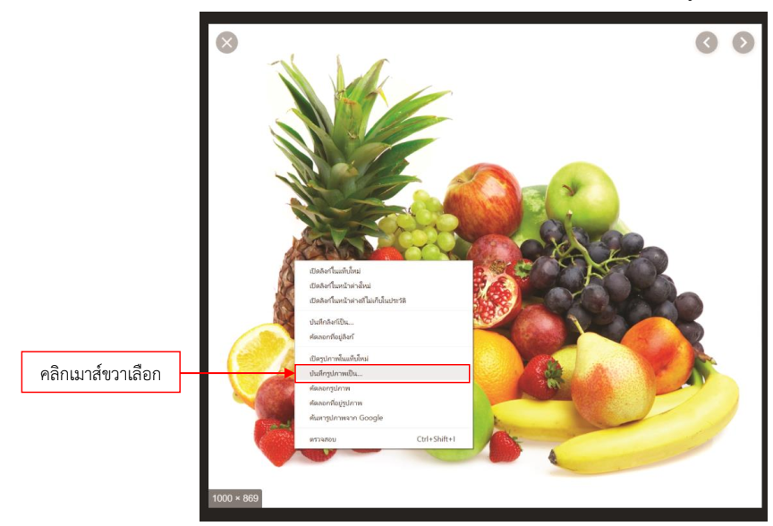 2. นำเมาส์มาวางที่ภาพที่ต้องการ แล้วคลิกเมาส์ปุ่มขวา เลือกคำสั่ง บันทึกรูปภาพเป็น…