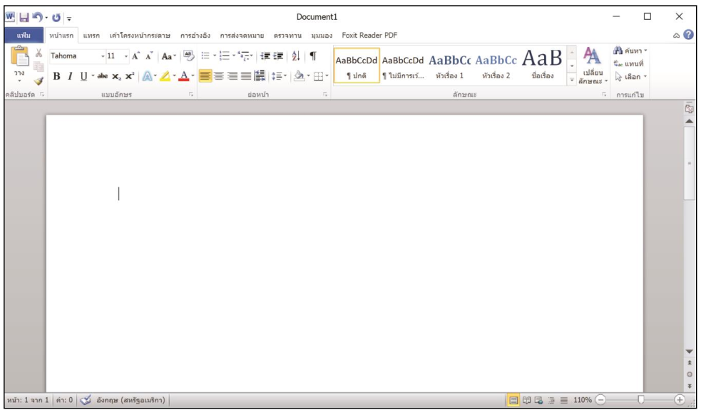 1. เปิดโปรแกรมสำหรับสร้างงานเอกสารจะพบหน้าโปรแกรม ดังภาพ