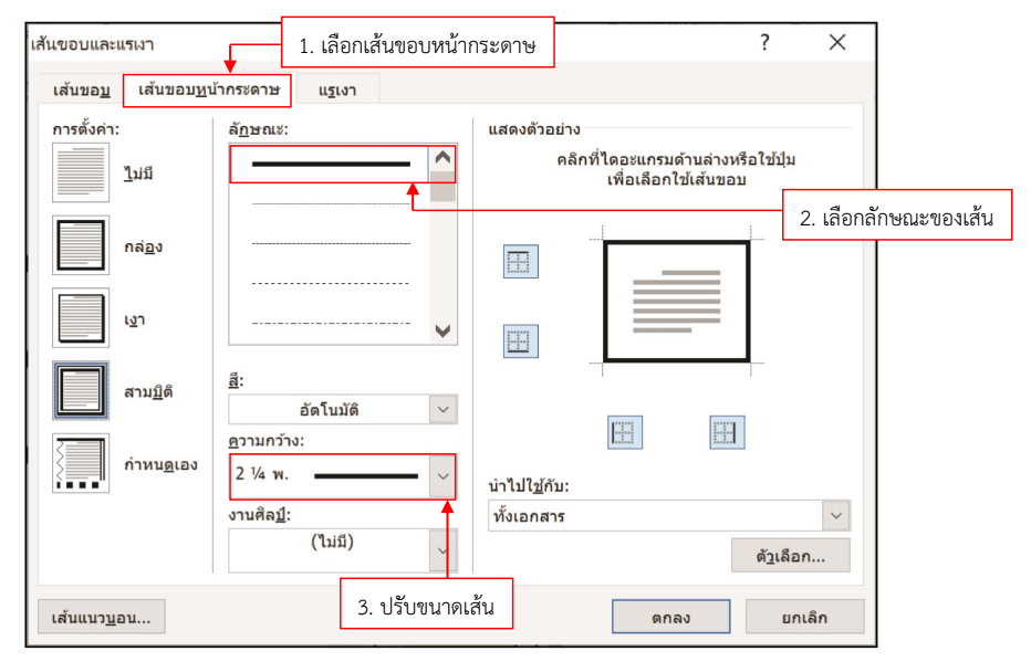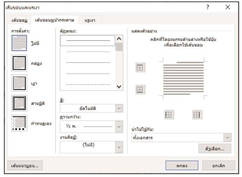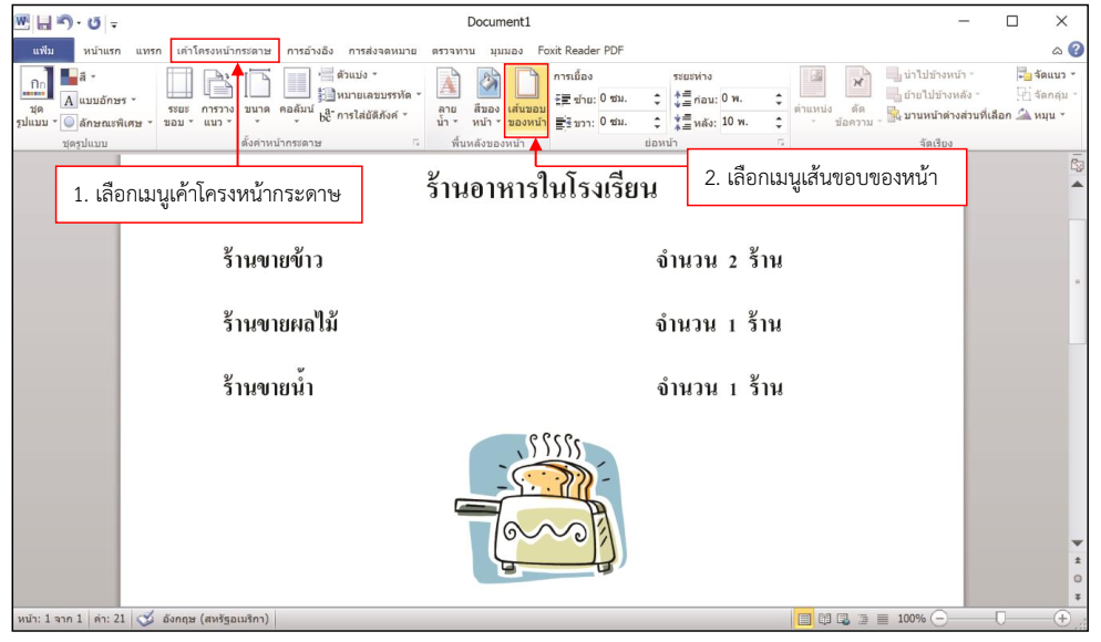 - คลิกเมาส์เลือกเส้นขอบหน้ากระดาษ