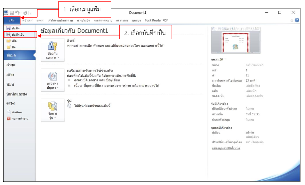 13. บันทึกไฟล์เก็บไว้ในเครื่องคอมพิวเตอร์ โดยเลือกเมนู