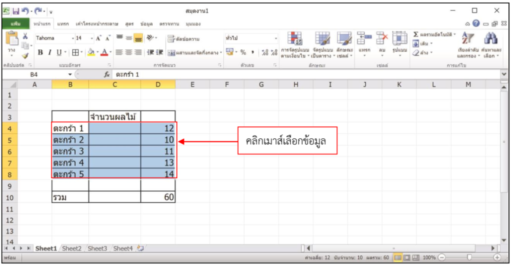คลิกเมาส์เลือกข้อมูล ดังภาพ