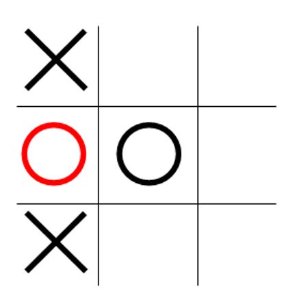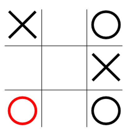 ถ้านักเรียนเป็นผู้เล่นฝ่าย O จะเลือกเขียน O ลงในช่องใดเพื่อให้มีโอกาสชนะมากที่สุด เพราะอะไร