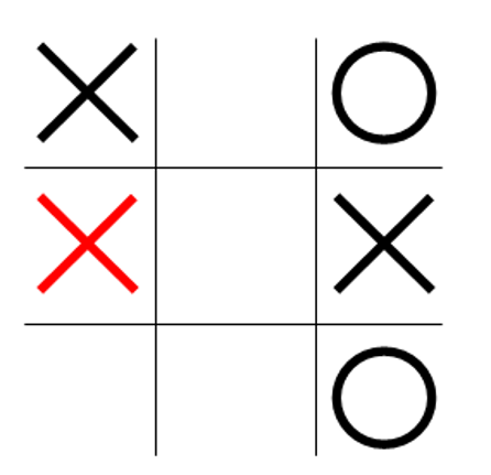 ถ้านักเรียนเป็นผู้เล่นฝ่าย X จะเลือกเขียน X ลงในช่องใด เพื่อให้มีโอกาสชนะมากที่สุด เพราะอะไร