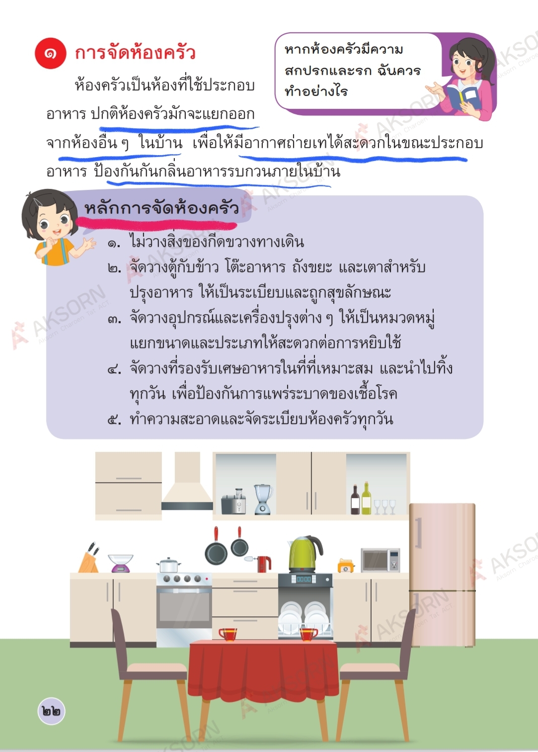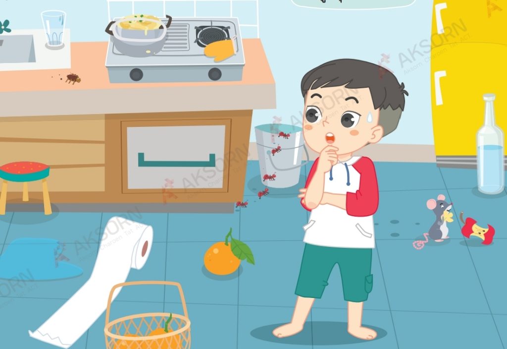 หากห้องครัวมีความสกปรกและรกรุงรังนักเรียนควรทำอย่างไร