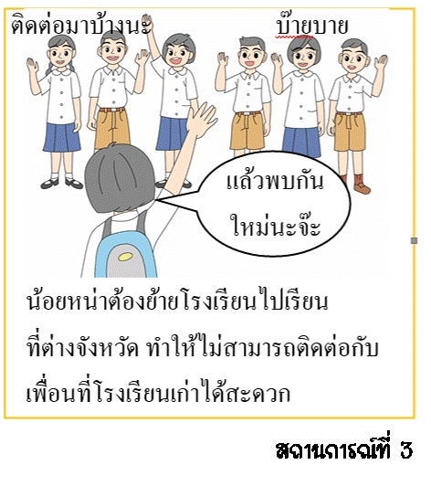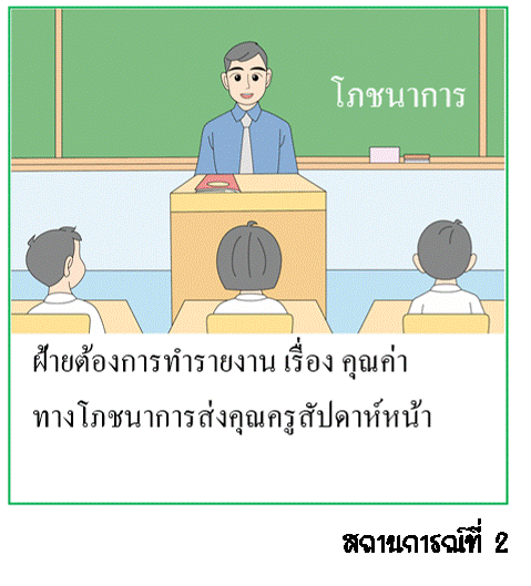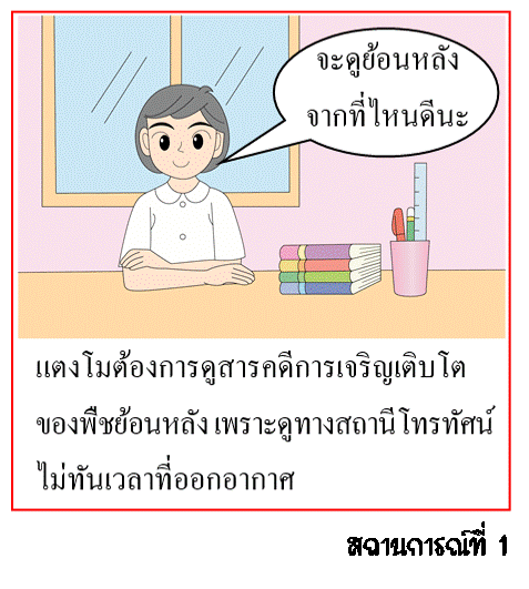 - นักเรียนวิเคราะห์สถานการณ์จากภาพว่าในสถานการณ์ดังกล่าวควรเลือกใช้บริการบนอินเทอร์เน็ตบริการใดจากบริการที่กำหนด แล้วตอบคำถาม ดังนี้