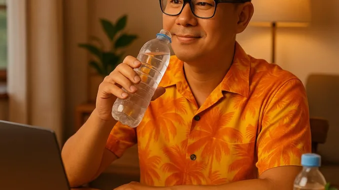 เช้านี้ตื่นมาประมาณหกโมงครึ่ง ผมเริ่มต้นวันด้วยการจิบ “น้ำเปล่าเย็น ๆ” ให้ร่างกายสดชื่น แล้วก็เปิดคอมพิวเตอร์