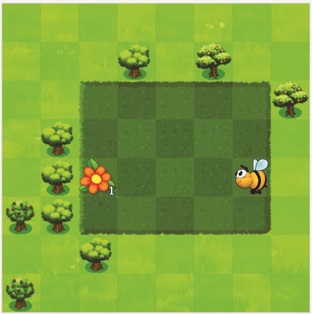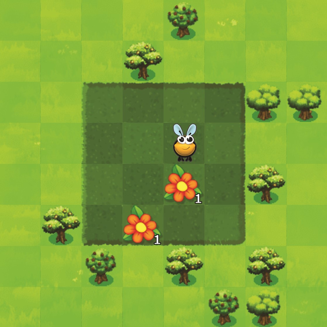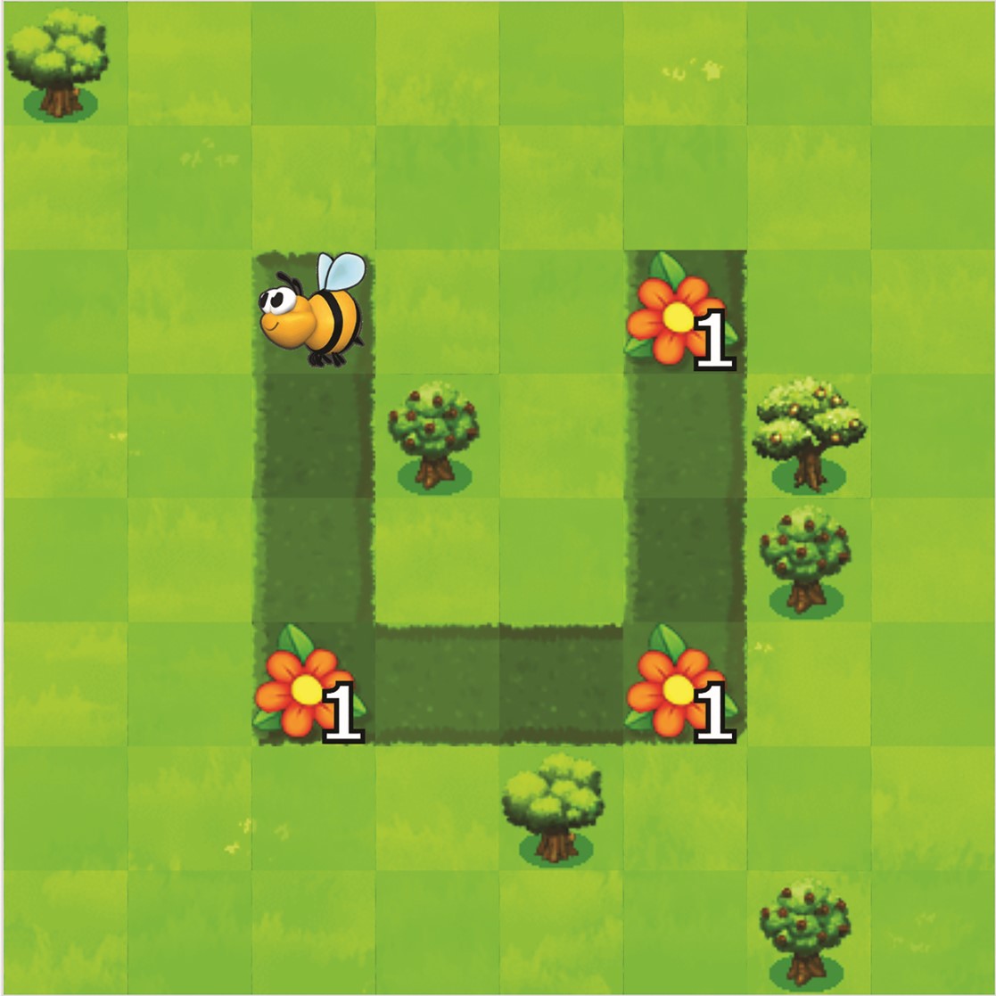 การเดินทางของผึ้งไปเก็บน้ำหวาน ถ้าต้องการให้ผึ้งเดินทางไปเก็บน้ำหวานที่ดอกไม้โดยผึ้งเดินทางไปข้างหน้า 1 ครั้ง จะเคลื่อนที่ไปได้ 1 ช่องตาราง การเดินทางของผึ้งจะต้องเป็น ดังนี้