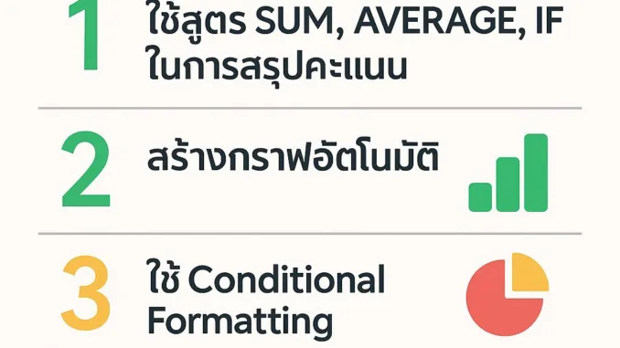1. ใช้สูตร SUM, AVERAGE, IF ในการสรุปคะแนน