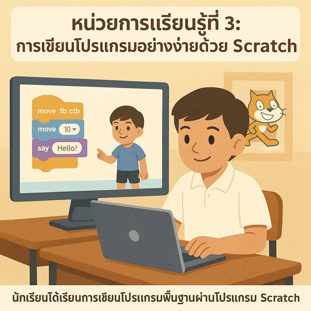 - เขียนโปรแกรมอย่างง่าย ด้วยโปรแกรม Scratch เพื่อฝึกแนวคิดเชิงคำนวณและการแก้ปัญหาอย่างเป็นระบบ
