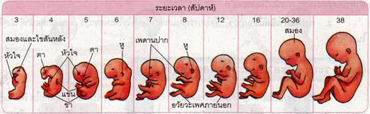 เอ็มบริโอจะเจริญเติบโต และเปลี่ยนแปลงรูปร่างไปตามอายุ โดยมีลำดับพัฒนาการเจริญของอวัยวะต่าง ๆ ดังภาพ
