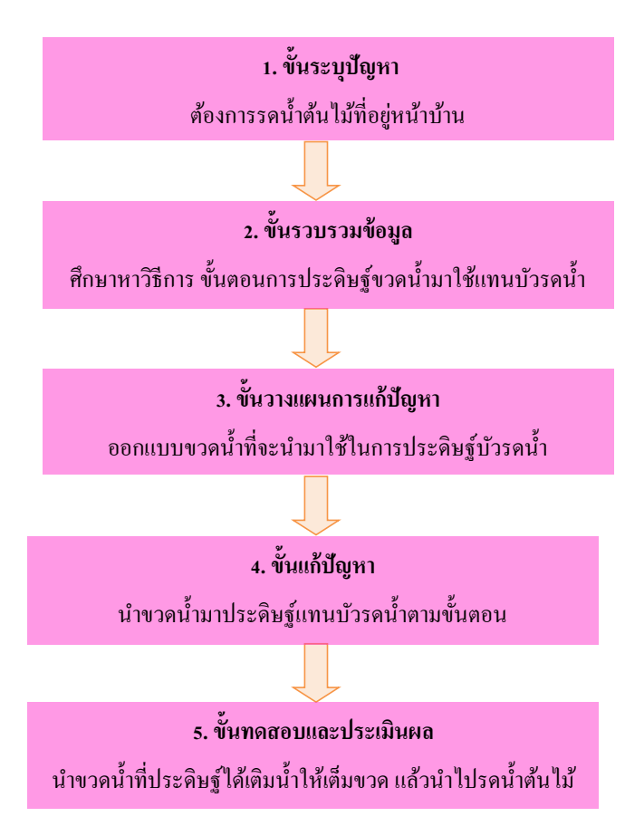 - 4. ขั้นแก้ปัญหา นำขวดน้ำมาประดิษฐ์แทนบัวรดน้ำตามขั้นตอน