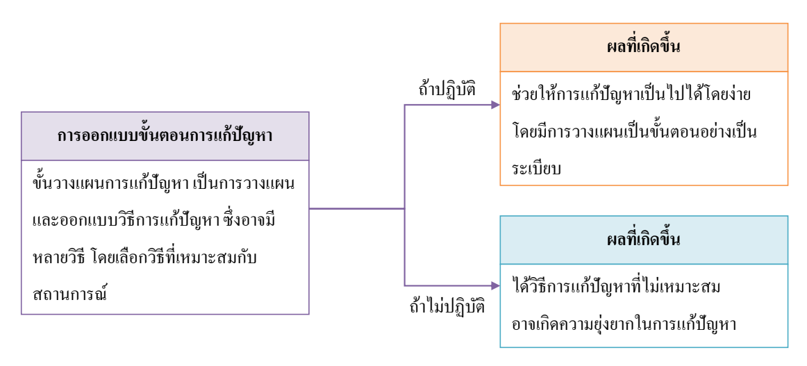 การออกแบบขั้นตอนการแก้ปัญหา พร้อมเสนอแนวทางการปฏิบัติ และผลที่เกิดขึ้นจากการปฏิบัติและไม่ปฏิบัติ เป็นแผนภาพความคิด