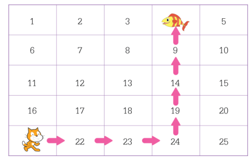 ปฎิบัติกิจกรรมหุ่นยนต์แมวเดินไป กินปลา โดยใช้บัตรคำสั่ง 4 คำสั่งในการเขียนโปรแกรมได้