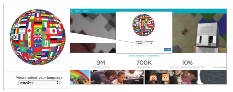 - เปิดเว็บไซต์ https://code.org แล้วเลือกภาษาที่ใช้