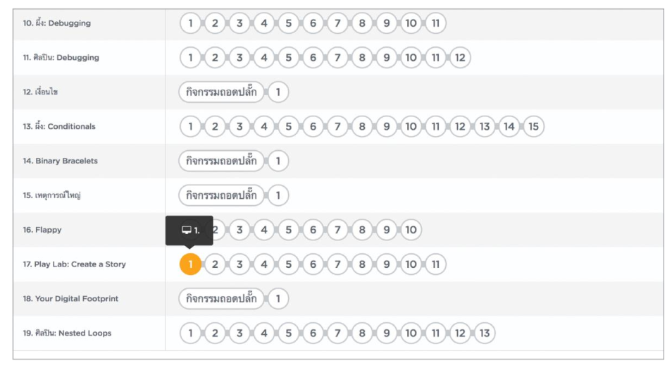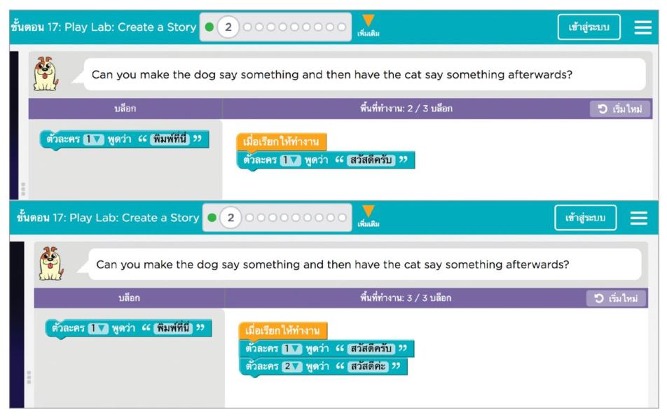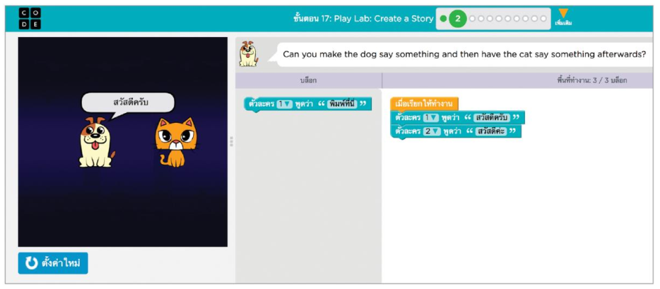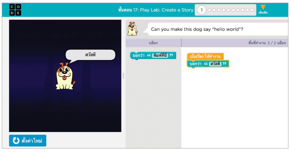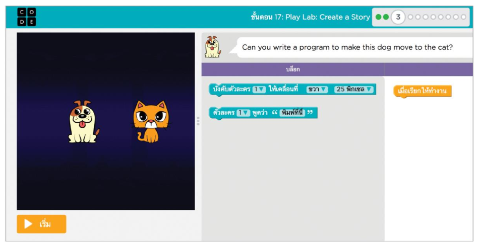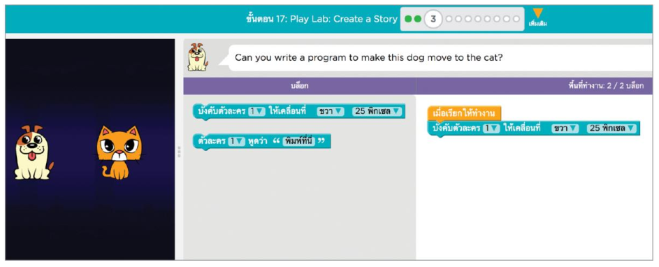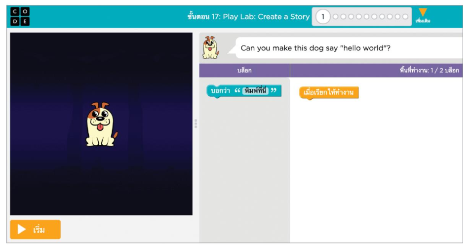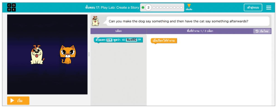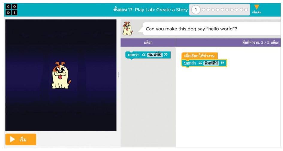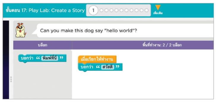 4. คลิกเมาส์เลือกบทเรียนลำดับที่ 17 Play Lab: Create a Story แล้วคลิกเมาส์เลือกข้อ 1