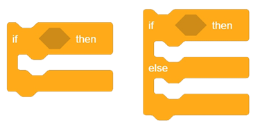 หากผังงานที่ผู้เรียนได้ออกแบบไว้ เป็น โครงสร้างแบบมีทางเลือก (Selection Structure) ซึ่งก็คือ การทำงานแบบมีเงื่อนไข สามารถใช้บล็อกคำสั่ง if then และ if then else เพื่อควบคุมการทำงาน