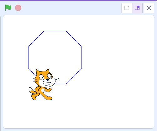 2. เมื่อโปรแกรมทำงานจะพบว่าตัวละครจะเดินลากเส้นเป็นรูปแปดเหลี่ยม ดังภาพ