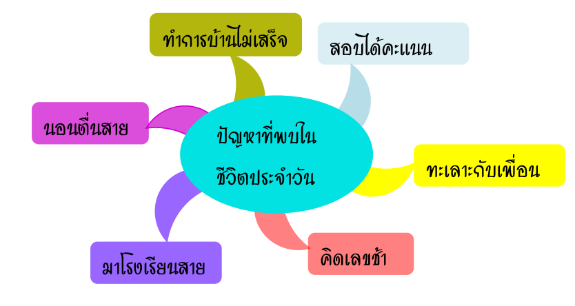 ปัญหาที่พบในชีวิตประจำวัน โดยเขียนบันทึกคำตอบของนักเรียนเป็นแผนภาพความคิด