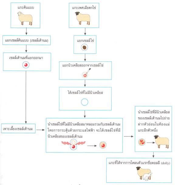 ตัวอย่างการโคลนแกะดอลลีมีขั้นตอน ดังนี้