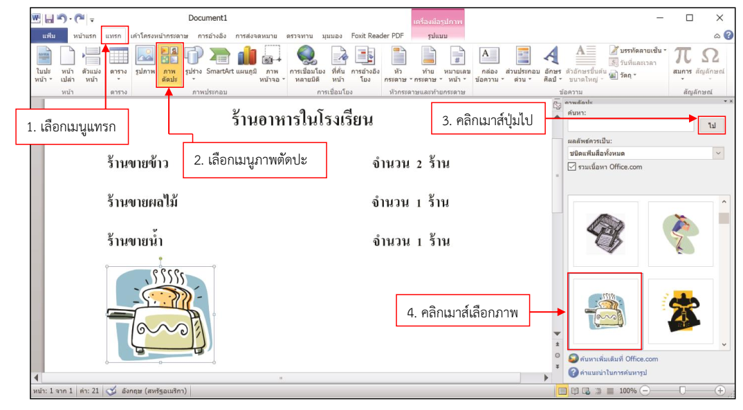 ฝึกพิมพ์เอกสารและแทรกภาพในโปรแกรมไมโครซอฟต์ออฟฟิศเวิร์ด (Microsoft Office Word)