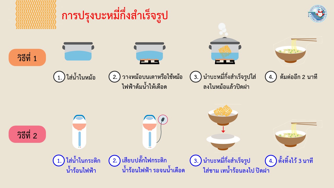 - บะหมี่กึ่งสำเร็จรูปต้องผ่านขั้นตอนใดจึงจะรับประทานได้