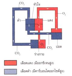 การไหลเวียนเลือดผ่านหัวใจ เริ่มจากเลือดจากส่วนต่าง ๆ ของร่างกายซึ่งเป็นเลือดดำ หรือเลือดที่มีปริมาณออกซิเจนต่ำไหลกลับสู่หัวใจทางห้องขวาบน (right atrium) เมื่อหัวใจบีบตัว เลือดจะไหลจากห้องขวาผ่านลิ้นหัวใจลงสู่ห้องล่างขวา (right ventricle) และเมื่อห้องล่างขวาบีบตัว เลือดจะไหลเข้าสู่หลอดเลือดไปยังปอดซึ่งเป็นบริเวณที่มีการแลกเปลี่ยนแก๊สจากเลือดดำหรือเลือดที่มีปริมาณออกซิเจนต่ำ ให้เป็นเลือดแดงหรือเลือดที่มีปริมาณออกซิเจนสูง แล้วไหลกลับสู่หัวใจทางห้องบนซ้าย (left atrium) เมื่อห้องบนซ้ายบีบตัว เลือดจะไหลผ่านลิ้นหัวใจลงสู่ห้องล่างซ้าย (left ventricle) เมื่อห้องล่างซ้ายบีบตัวเลือดจะไหลเข้าสู่หลอดเลือดแดงไปเลี้ยงส่วนต่าง ๆ ของร่างกาย เปลี่ยนเป็นเลือดที่มีปริมาณออกซิเจนต่ำไหลกลับสู่หัวใจเช่นนี้เรื่อย ๆ ไป ดังภาพ