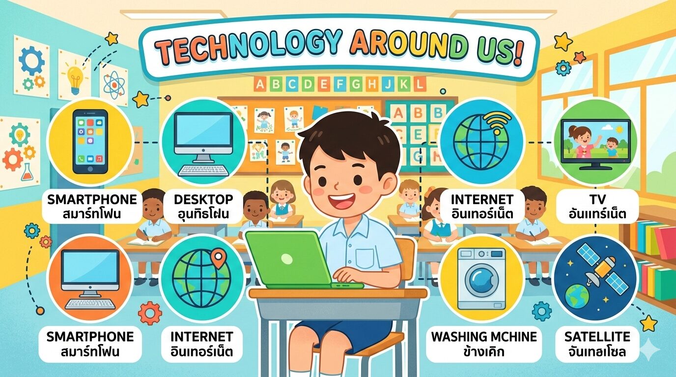 ในชีวิตประจำวันของเรา เทคโนโลยีอยู่รอบตัวแทบทุกที่ ไม่ว่าจะเป็นโทรศัพท์มือถือ คอมพิวเตอร์ อินเทอร์เน็ต หรือเครื่องใช้ไฟฟ้าต่าง ๆ เทคโนโลยีช่วยให้การทำงาน การเรียนรู้ และการติดต่อสื่อสารสะดวกและรวดเร็วมากขึ้น