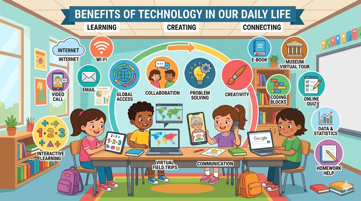 การเข้าใจประโยชน์ของเทคโนโลยีจะช่วยให้นักเรียนสามารถเลือกใช้เทคโนโลยีได้อย่างเหมาะสมและเกิดประโยชน์สูงสุด