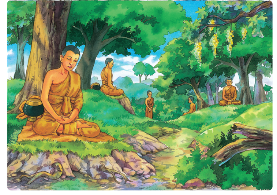 และเมื่อมีความรู้พอสมควรแล้วต้องการที่จะปฏิบัติธรรมในป่าเพื่อแสวงหาความสงบ จึงพร้อมใจกันไปทูลลาพระพุทธเจ้า พระพุทธเจ้าทรงทราบว่าจะเกิดเหตุร้ายแก่พระสงฆ์เหล่านี้ จึงรับสั่งให้พระสงฆ์ไปลาพระสารีบุตรก่อน