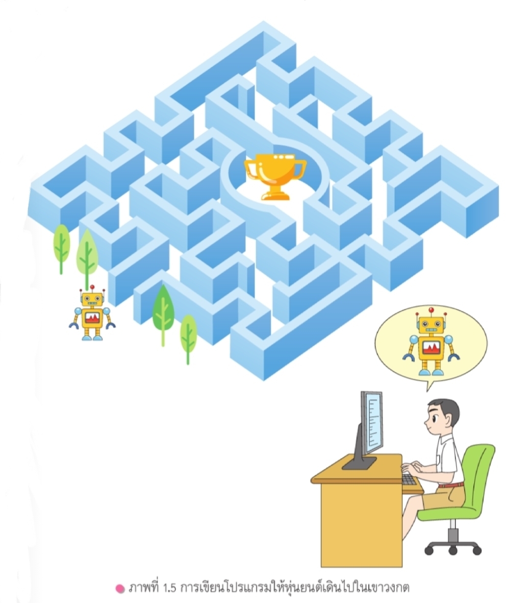 การฝึกคิดแก้ปัญหาอย่างเป็นขั้นตอน เป็นพื้นฐานสำหรับการพัฒนาสิ่งต่าง ๆในอนาคต เช่นถ้าเราต้องการเขียนโปรแกรมให้หุ่นยนต์เดินไปยังเป้าหมายในเขาวงกตเราต้องนำวิธีการคิดของเราและเงื่อนไขต่าง ๆ มาเปลี่ยนเป็นโปรแกรมสำหรับหุ่นยนต์