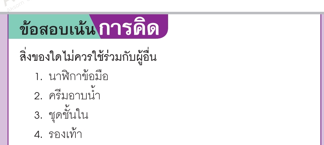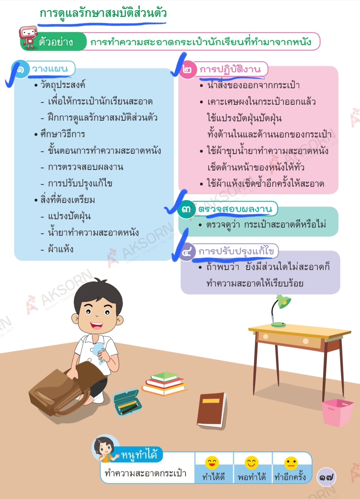 1 ไม่ใช้สมบัติส่วนตัวร่วมกับคนอื่น 2 ใช้สมบัติส่วนตัวอย่างระมัดระวัง 3 ทำความสะอาดสมบัติส่วนตัวอย่างสม่ำเสมอ 4 จัดเก็บสมบัติส่วนตัวให้เป็นระเบียบเรียบร้อย