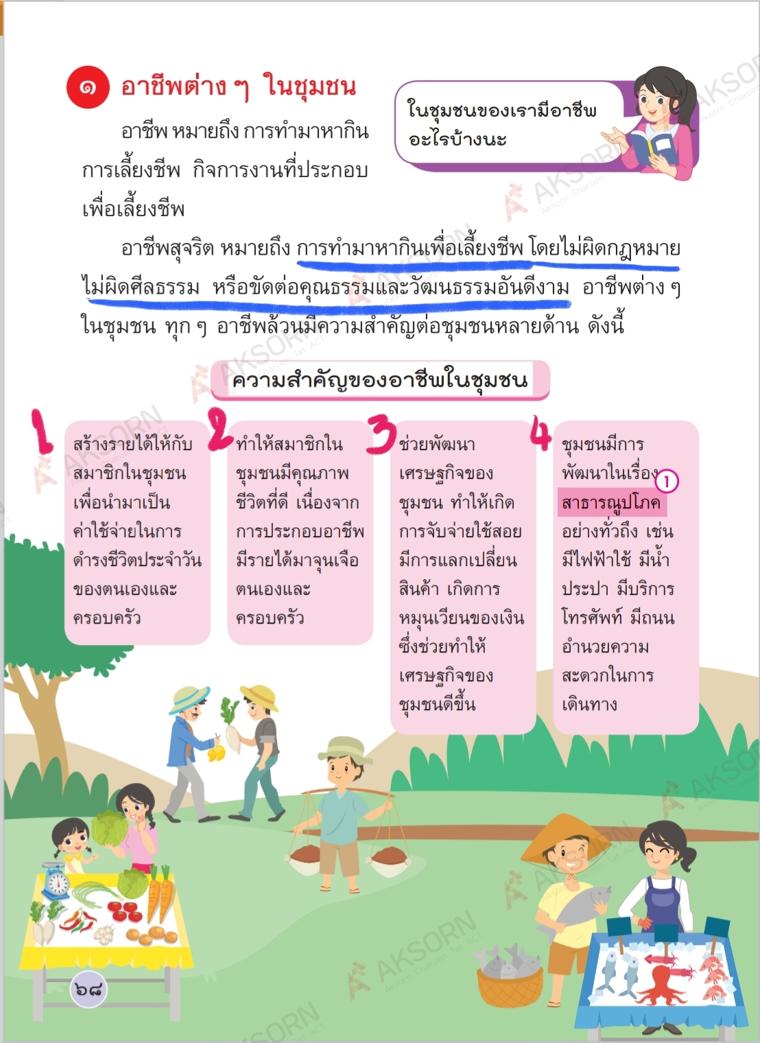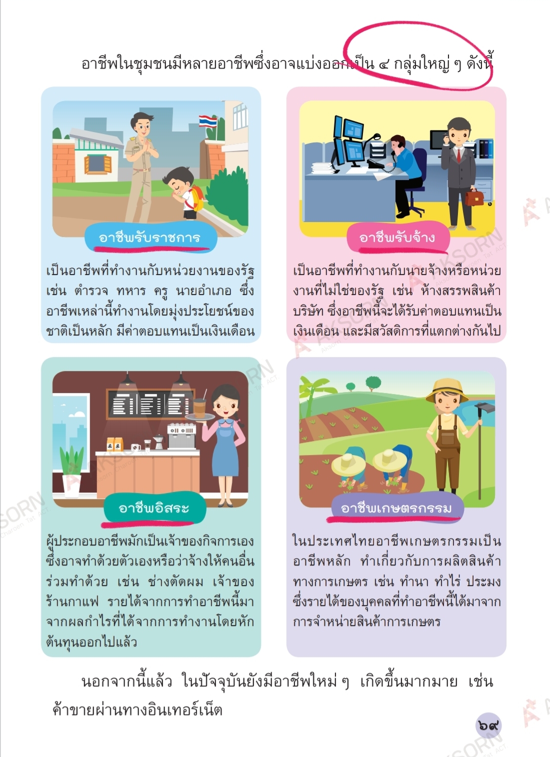 4) อาชีพเกษตรกรรม : เป็นอาชีพที่ผลิตสินค้าทางการเกษตร รายได้มาจากการจําหน่ายสินค้าทางการเกษตร