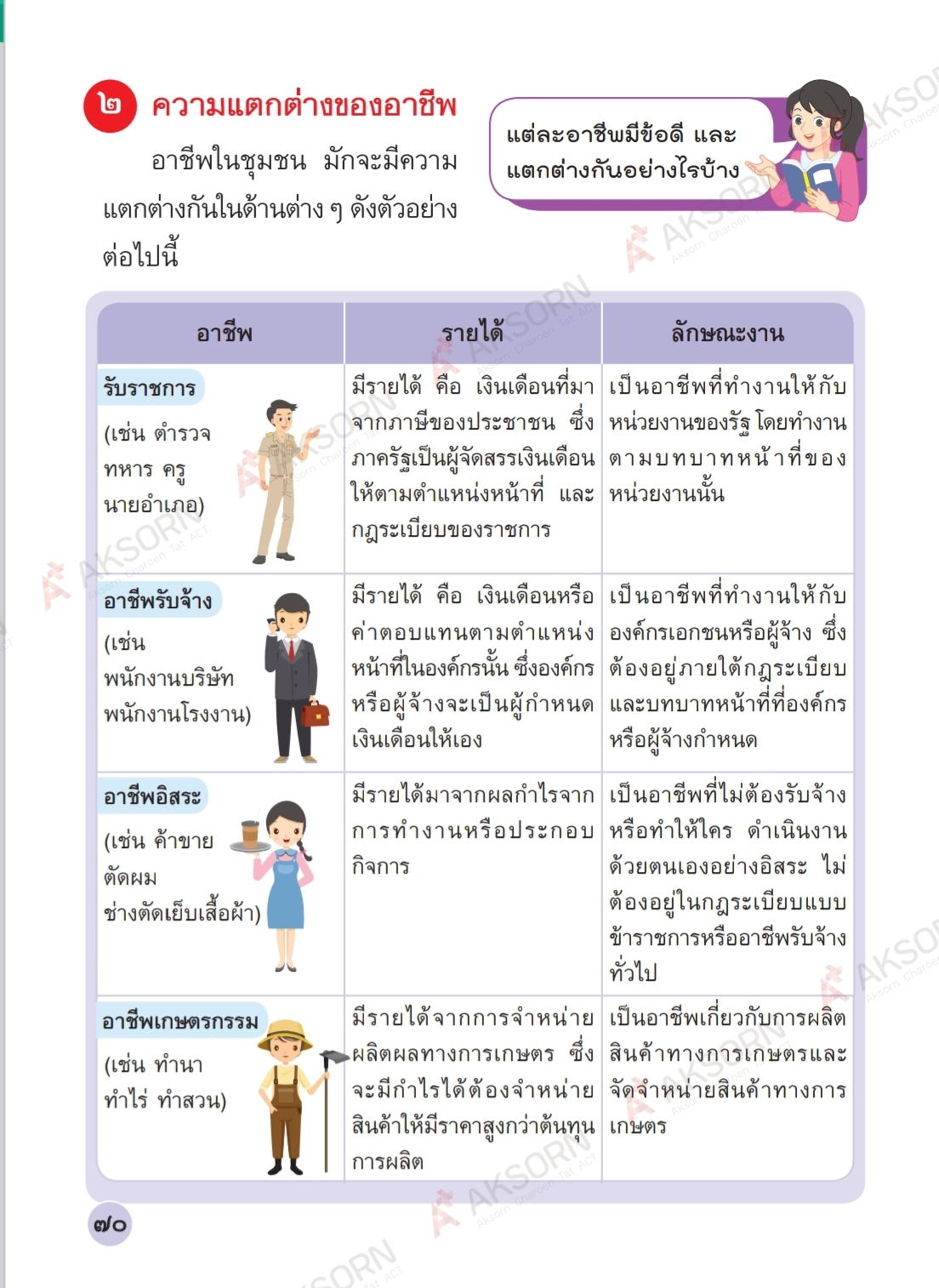 1) อาชีพรับราชการ : เป็นอาชีพที่ทํางานกับหน่วยงานรัฐ โดยมุ่งประโยชน์ของชาติเป็นหลัก มีค่าตอบแทนเป็นเงินเดือน