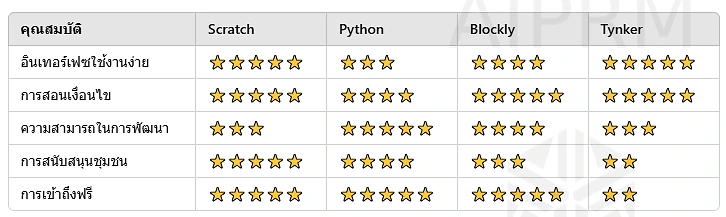 - สำหรับผู้เริ่มต้น อาจดูซับซ้อนเมื่อเปรียบเทียบกับ Scratch
