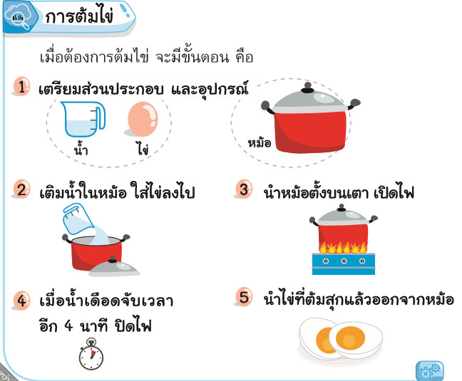 คือ การใช้ข้อความแสดงขั้นตอนการทำงาน มีส่วน ประกอบ 2 ส่วน คือ ลำดับ และขั้นตอนการทำงาน