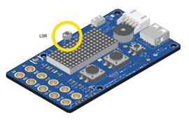 ให้เซนเซอร์ชนิดค่าความต้านทานเปลี่ยนแปลงตามความเข้มแสง หรือ เรียกสั้น ๆ ว่า แอลดีอาร์ (LDR, Light Dependent Resistor) เมื่อแสงตกกระทบแอลดีอาร์มีความเข้มแสงเพิ่มมากขึ้นค่าความต้านทานจะลดลง