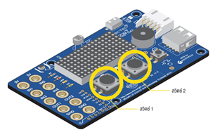 เป็นเซนเซอร์ตรวจวัดการกดซึ่งมีอยู่ 2 ตัวบนบอร์ด KidBright คือ สวิตช์ 1 และ สวิตช์ 2 การอ่านค่าจากเซนเซอร์สวิตช์ ใช้บล็อก สวิตช์ 1 (Switch 1) หรือ สวิตช์ 2 (Switch 2) เมื่อมีการกดสวิตช์ ค่าที่อ่านได้จะมีสถานะเป็นจริง หรือมีค่าเป็น 1 และจะมีสถานะเป็นเท็จ หรือมีค่าเป็น 0 เมื่อไม่มีการกดสวิตช์