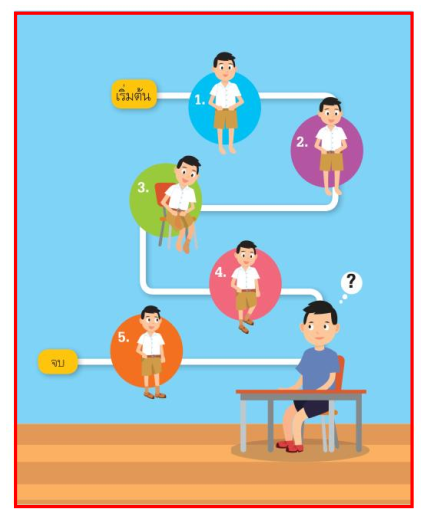 - จากภาพการแต่งตัวไปโรงเรียนของนักเรียนชาย นักเรียนคิดว่ามีขั้นตอนการแต่งตัวอะไรบ้าง