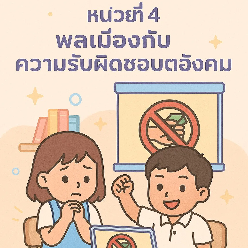 หน่วยที่ 4: พลเมืองกับความรับผิดชอบต่อสังคม นี้ เป็นการต่อยอดจากความรู้เรื่องความพอเพียงและการต่อต้านการทุจริตที่ได้เรียนรู้มาในหน่วยก่อนหน้า โดยมุ่งเน้นไปที่บทบาทของพลเมืองที่ดีในการดูแลสังคมและประเทศชาติ ซึ่งเป็นพื้นฐานสำคัญในการสร้างสังคมที่น่าอยู่และปราศจากการทุจริต