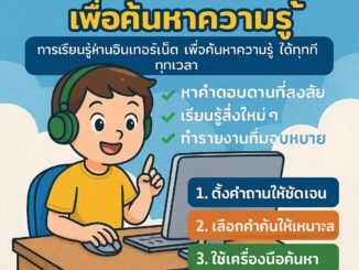 ในยุคดิจิทัล การเรียนรู้ไม่ได้จำกัดแค่ในห้องเรียนอีกต่อไป เด็ก ๆ สามารถเรียนรู้สิ่งใหม่ ๆ ได้จากที่บ้าน เพียงแค่มีอินเทอร์เน็ตและอุปกรณ์เชื่อมต่อ เช่น คอมพิวเตอร์ แท็บเล็ต หรือโทรศัพท์มือถือ อินเทอร์เน็ตคือแหล่งความรู้ที่ไม่มีที่สิ้นสุด อินเทอร์เน็ตเปรียบเสมือน “ห้องสมุดขนาดใหญ่” ที่รวมข้อมูลมากมาย เช่น ประโยชน์ของการค้นหาความรู้ทางอินเทอร์เน็ต วิธีค้นหาข้อมูลอย่างถูกต้อง ตัวอย่าง: อยากรู้ว่า “ดอกทานตะวันโตในฤดูไหน?”ให้พิมพ์ว่า: “ดอกทานตะวัน ฤดู” ตัวอย่าง: คำว่า “ดอกทานตะวัน” หรือ “ฤดูที่เหมาะกั [ อ่านต่อ ]