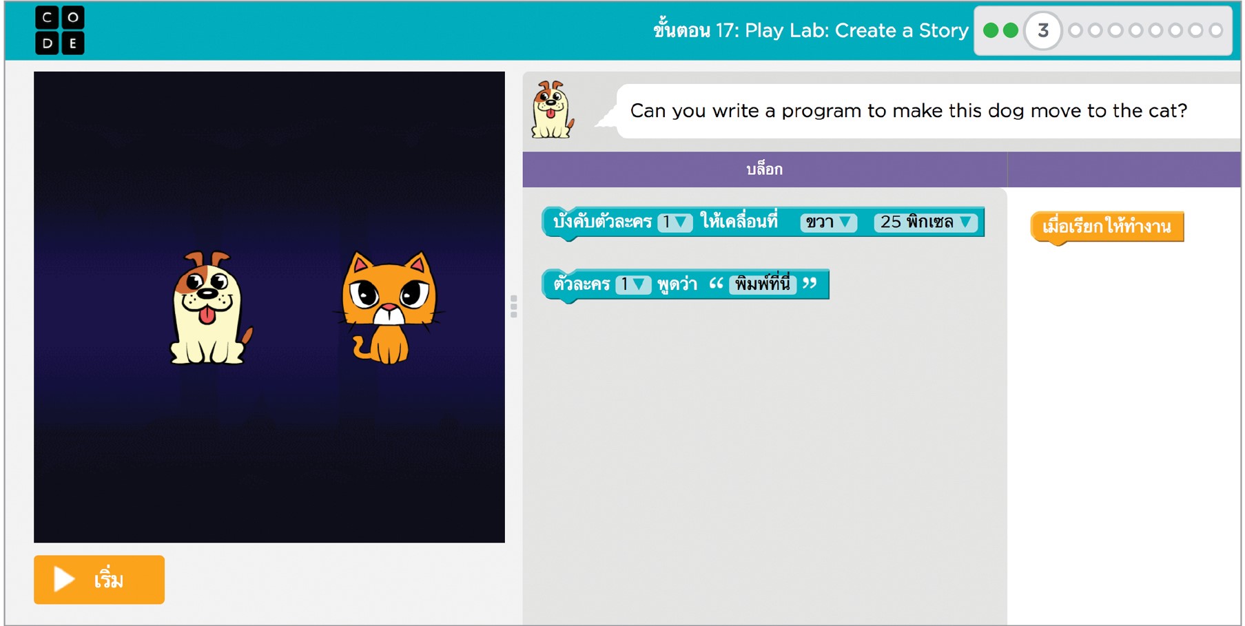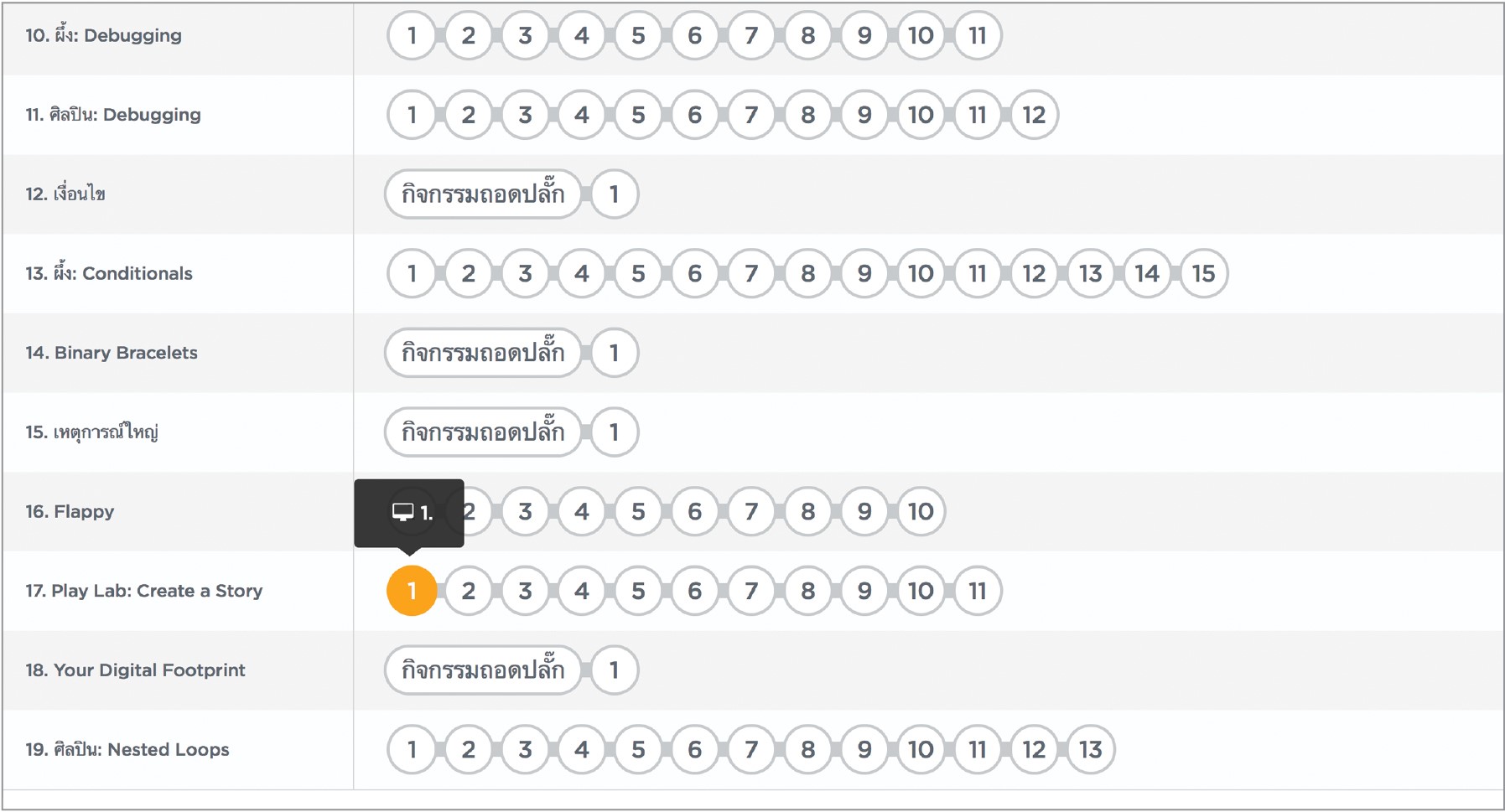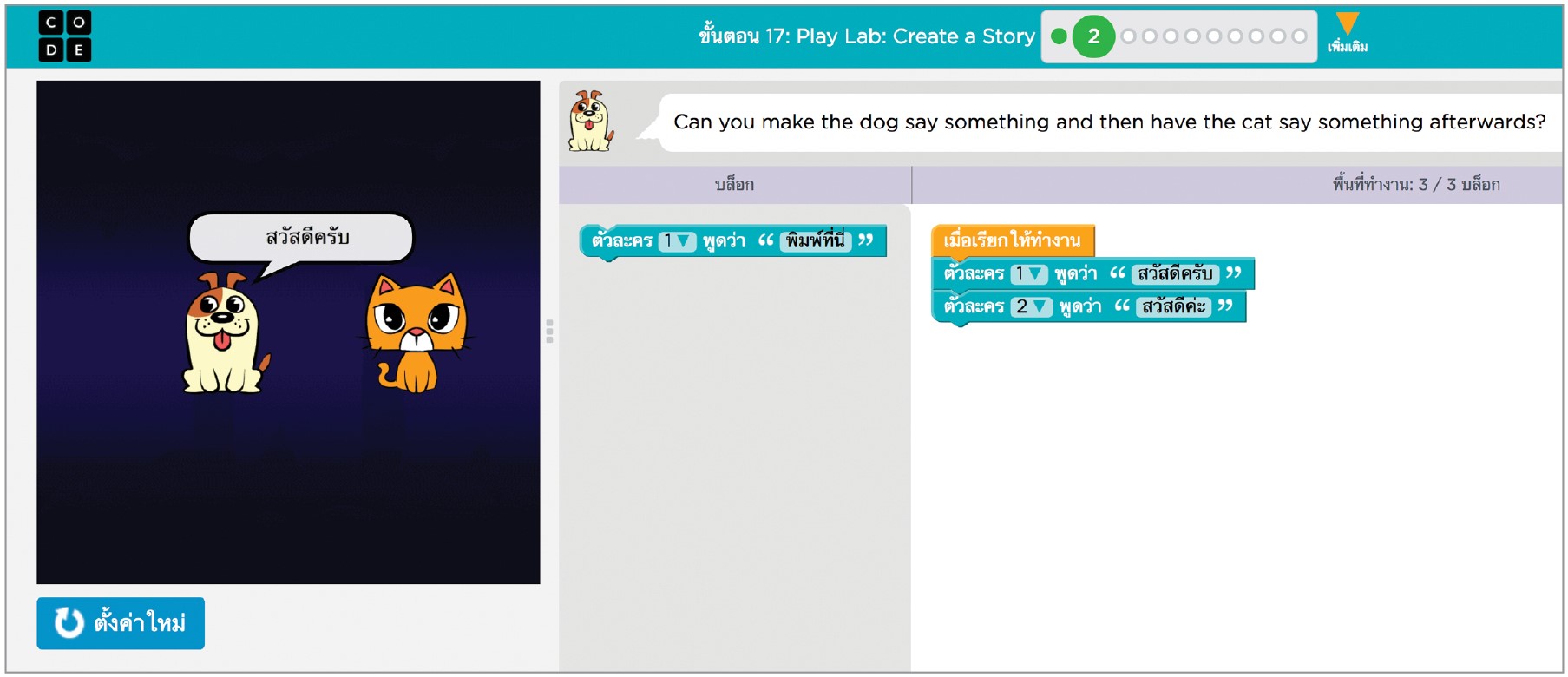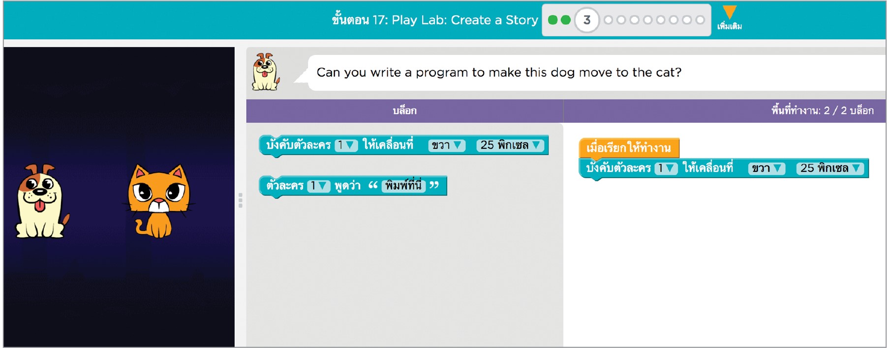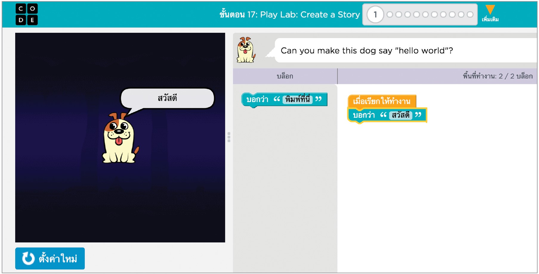 1. คลิกเมาส์เลือกบทเรียนลำดับที่ 17 Play Lab: Create a Story แล้วคลิกเมาส์เลือกข้อ 1