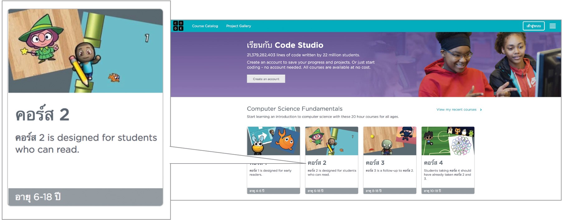 1. เปิดเว็บไซต์ https://code.org แล้วเลือกภาษาที่ใช้