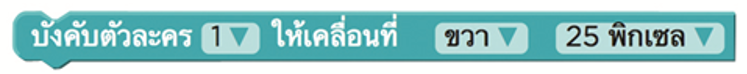 คลิกเมาส์ลากบล็อกคำสั่ง 00000.jpg 3 มาวาง แล้วปรับระยะทางเคลื่อนที่ให้เหมาะสมตามต้องการ จากนั้นทดสอบโปรแกรม