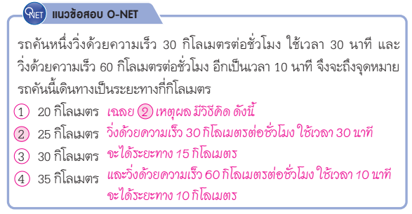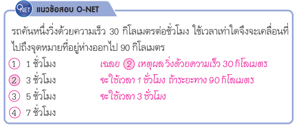 รถยนต์แต่ละคันอาจวิ่งด้วยความเร็วไม่เท่ากัน รถยนต์ที่วิ่งด้วยความเร็วเฉลี่ย 50 กิโลเมตรต่อชั่วโมง หมายความว่า 1 ชั่วโมงจะวิ่งไปได้ 50 กิโลเมตรถ้าระยะทาง 100 กิโลเมตรจะใช้เวลาวิ่ง 2 ชั่วโมง