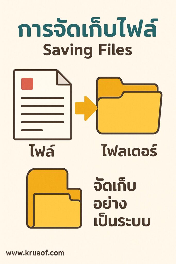 - ตั้งชื่อแฟ้มให้เข้าใจ เช่น “การบ้าน-ภาษาไทย-มิ.ย.”