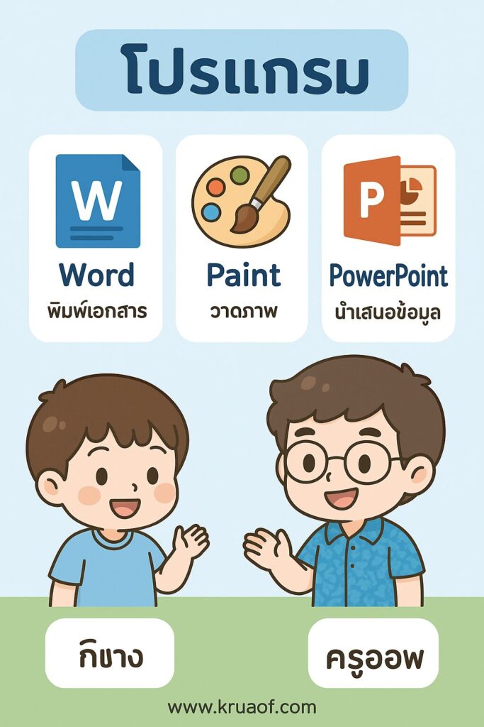 - ฝึกลากเมาส์เข้าเมนู เปิด–ปิดโปรแกรม