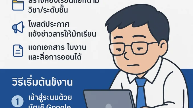 ในยุคที่การเรียนรู้เปลี่ยนจากห้องเรียนแบบดั้งเดิมเข้าสู่โลกออนไลน์มากขึ้น Google Classroom ได้กลายเป็นเครื่องมือสำคัญที่ช่วยให้ครูสามารถจัดการชั้นเรียนได้ง่ายและมีประสิทธิภาพ โดยเฉพาะในระดับประถมศึกษา ซึ่งการจัดการให้เรียบง่ายและเข้าใจง่ายคือหัวใจสำคัญ